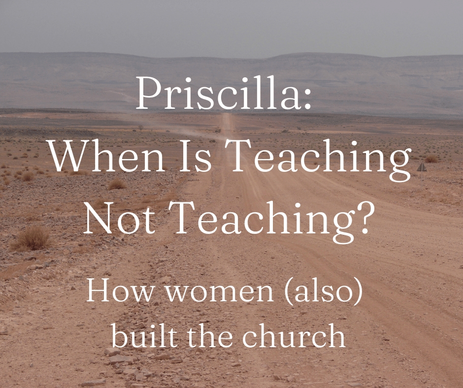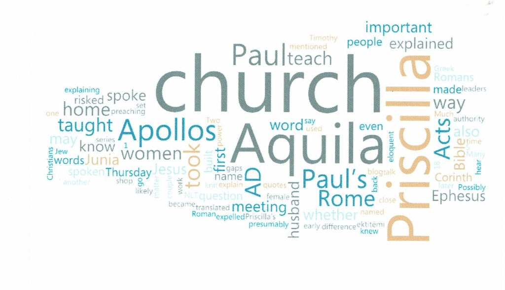 When I asked whether I taught at the meeting, they told me I simply talked about my books. I had spoken about Lent, how Jesus had female disciples and how he interacted with them. To me, this was teaching about the Bible and, dare I say, theology, regardless of it being a Thursday afternoon rather than church on a Sunday. What is the difference? This question is important when we think about Priscilla and her husband, Aquila. More on this later.