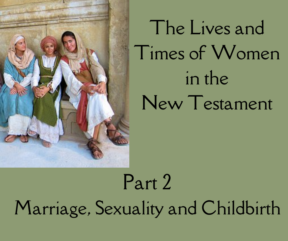 Welcome to part 2 of my series on the lives and times of women in the New Testament. In part 1, I examined women in a patriarchal society, and this time we will look at women’s everyday lives in terms of marriage, sexuality and children. Life was tough and disease was rife. Life expectancy was short, and for women pregnancy and childbirth were dangerous times, and their life expectancy was shorter than that of men.