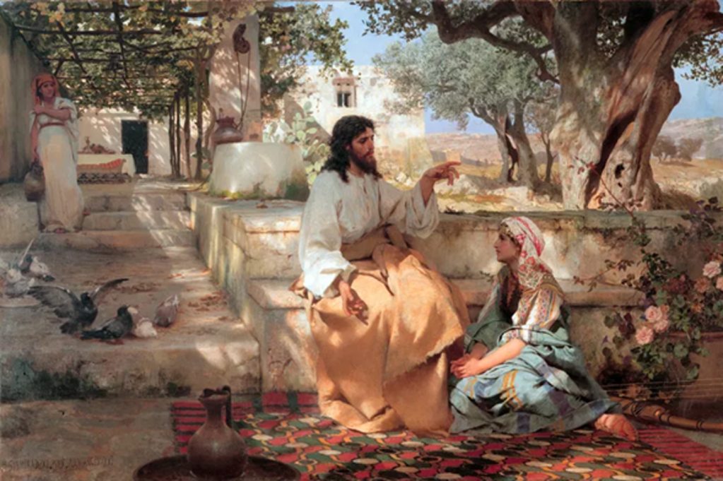 The first is Martha and Mary with Jesus, by Henryk Siemiradzki, a 19th-century Polish artist. Let me ask you a few questions about the painting.
