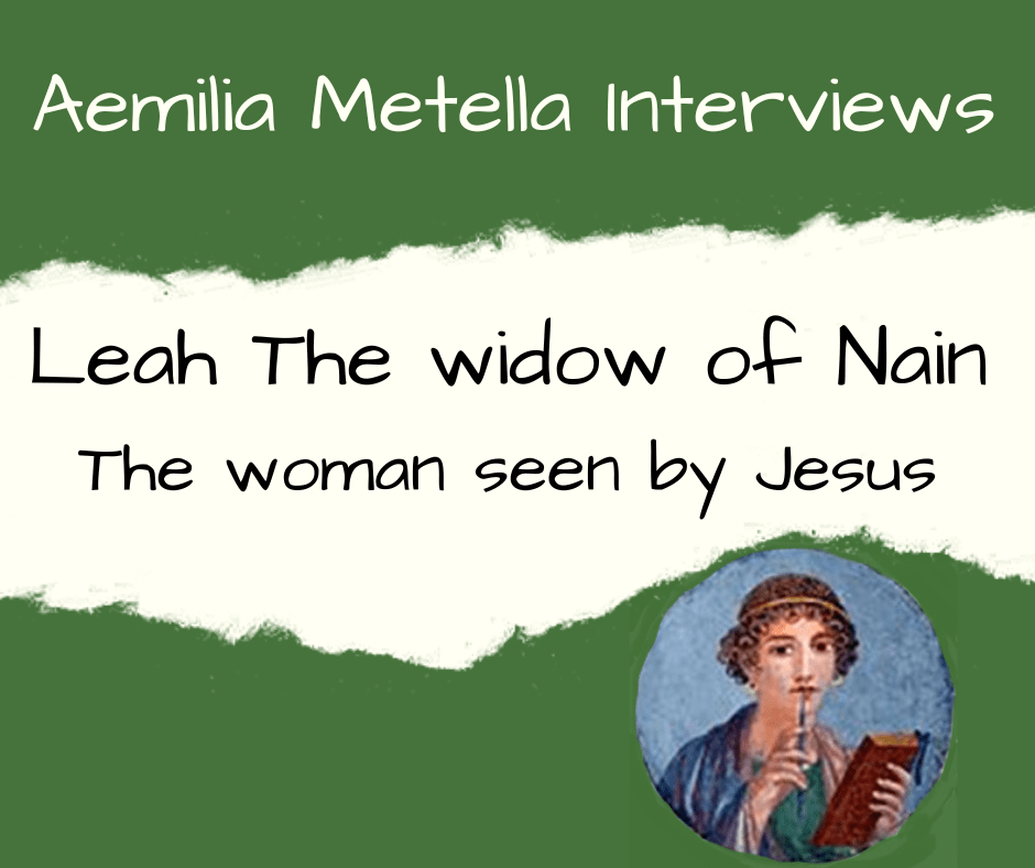 The Woman Seen by Jesus The small child ran into her grandmother’s arms and hid her head in her dress. “Don’t be shy, Miriam,” her grandmother said. “Aemilia has travelled a long way to speak to me and meet your abba.” “Abba! Abba!” the young girl shouted, looking around for her father. “My son dotesContinue reading “Aemilia Metella Interviews the Widow of Nain”